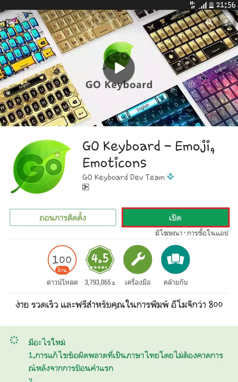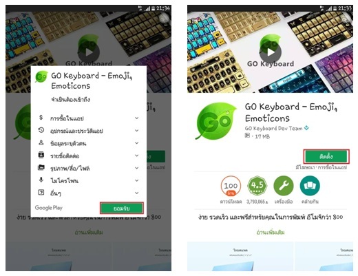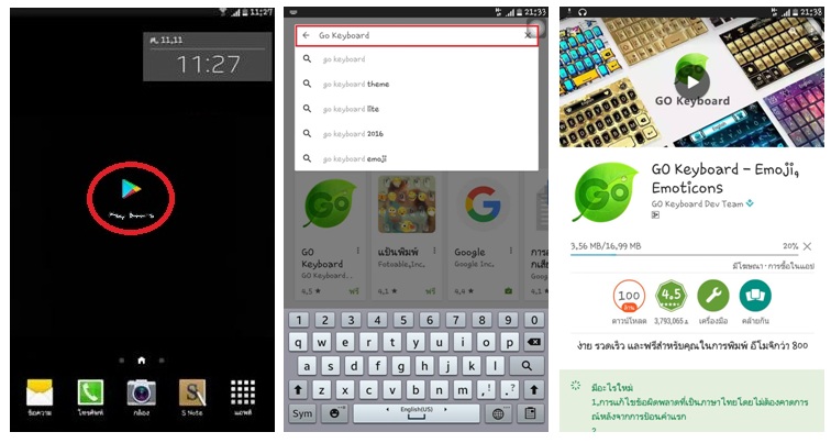 1 เข้าไปโหลด Go Keyboard จาก Play Store แล้วทำการติดตั้งแอพตามภาพครับ