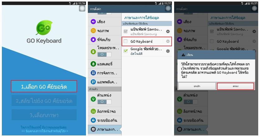4 ตั้งค่า Go Keyboard ทั้ง 3 ขั้นตอน