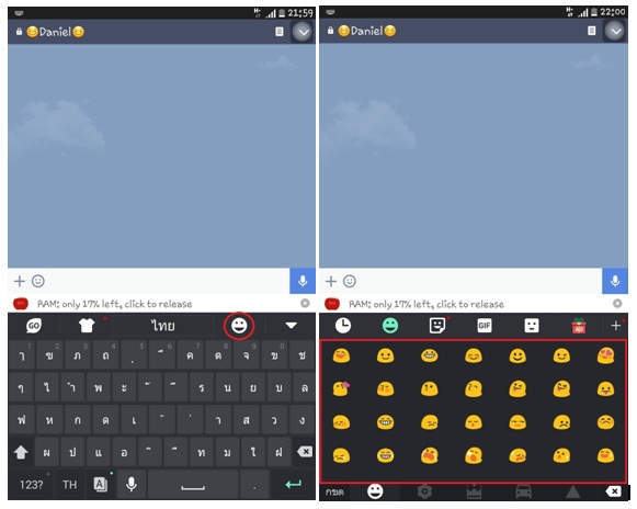 5 เข้าแอพ line หรือ Facebook เพื่อทดสอบแป้นพิมพ์ เท่านี้เราก็ได้ อิโมจิคีย์บอร์ด มาใช้กันแล้วครับ