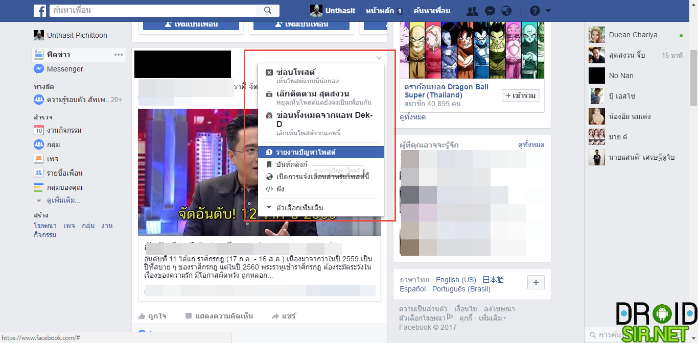 3.กดเลือก รายงานปัญหาโพสต์