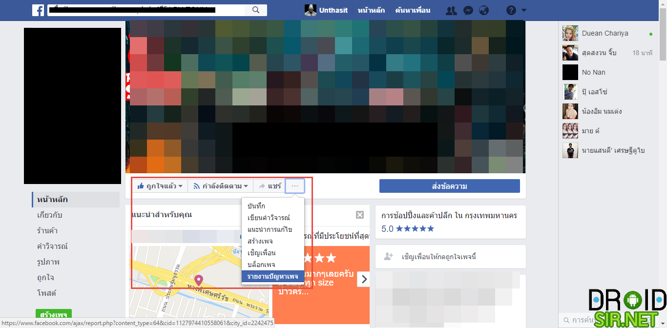 1.ไปยังแฟนเพจที่คุณต้องการรายงาน