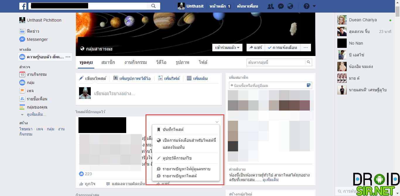 2.ทางด้านขวาบนของโพสต์กดลูกศรชี้ลง
