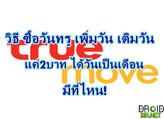 ฟังดูเหมือนไม่น่าเชื่อเลยใช่ไหมกับการซื้อวันทรูแค่ 2 บาท สามารถยืดวันออกไปได้อีกเป็นเดือน แต่นี่คือเรื่องจริง ซึ่งล่าสุดทางเครือข่ายทรูได้ออกโปรโมชั่นใหม่มาเอาใจลูกค้าทรูกันแบบทั่วประเทศ ทั้งโปรยืมงิน ยืมอินเทอร์เน็ตและที่จะพลาดไม่ได้เลยก็คือการซื้อวันทรูเพิ่มจากเดิมนั่นเอง แถมจ่ายแบบเบาๆ แค่ 2 บาทเท่านั้น ซึ่งจะมีวิธีการซื้อวันทรูอย่างไร ลองไปดูกันเลย