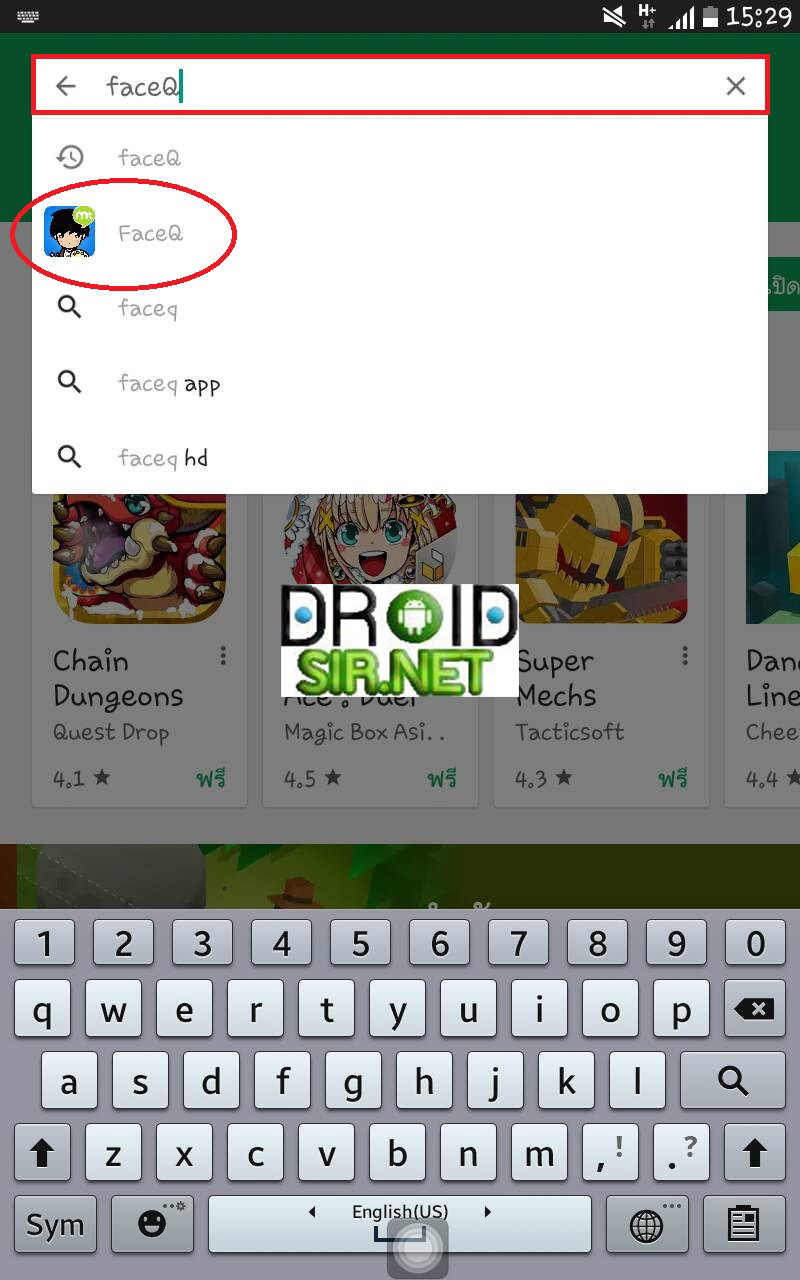 1.โหลดและติดตั้งแอพ โดยค้นหาใน Play Store ว่า FaceQ ครับ