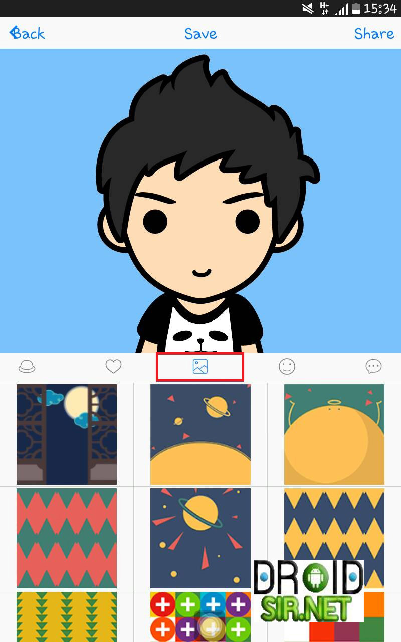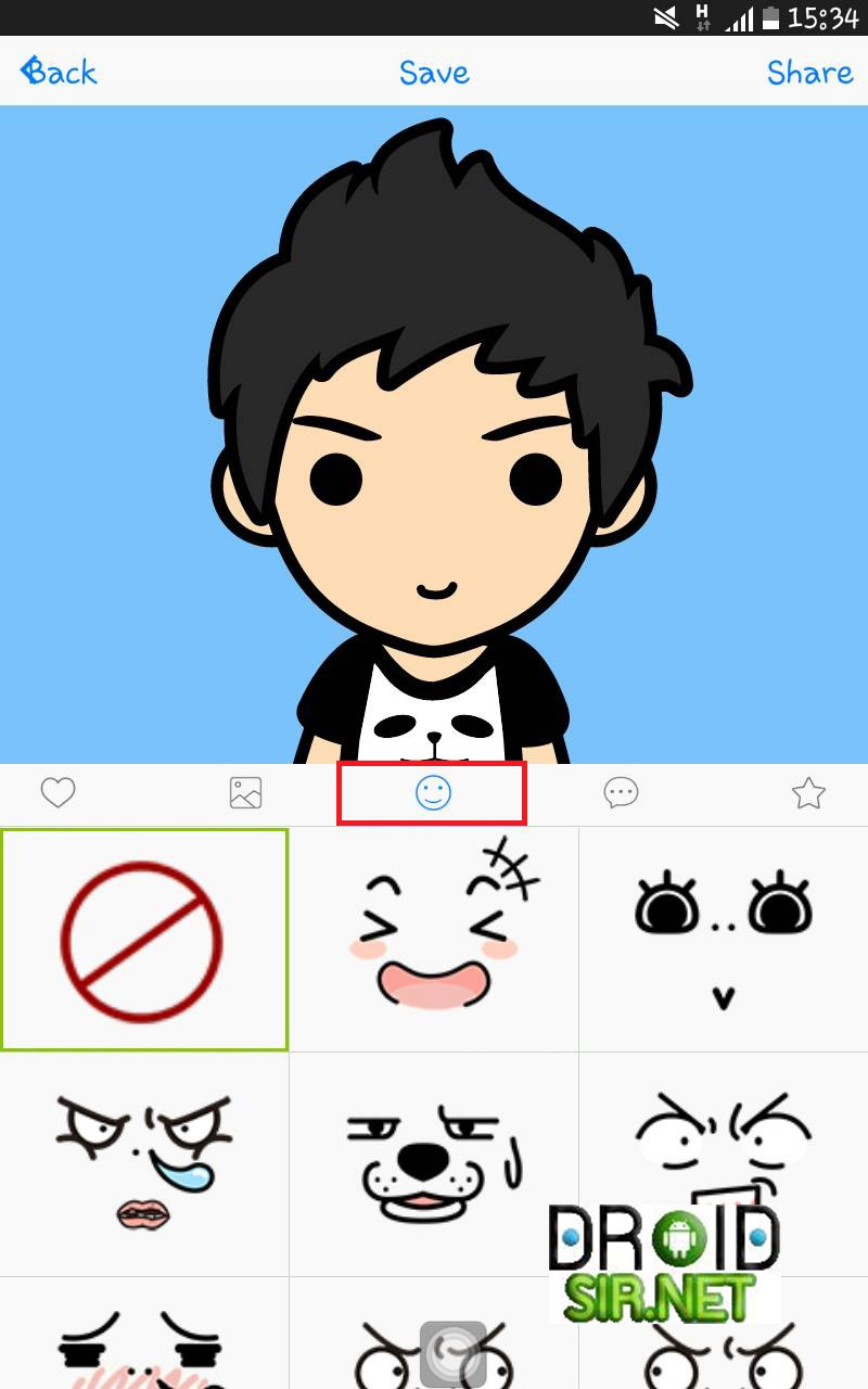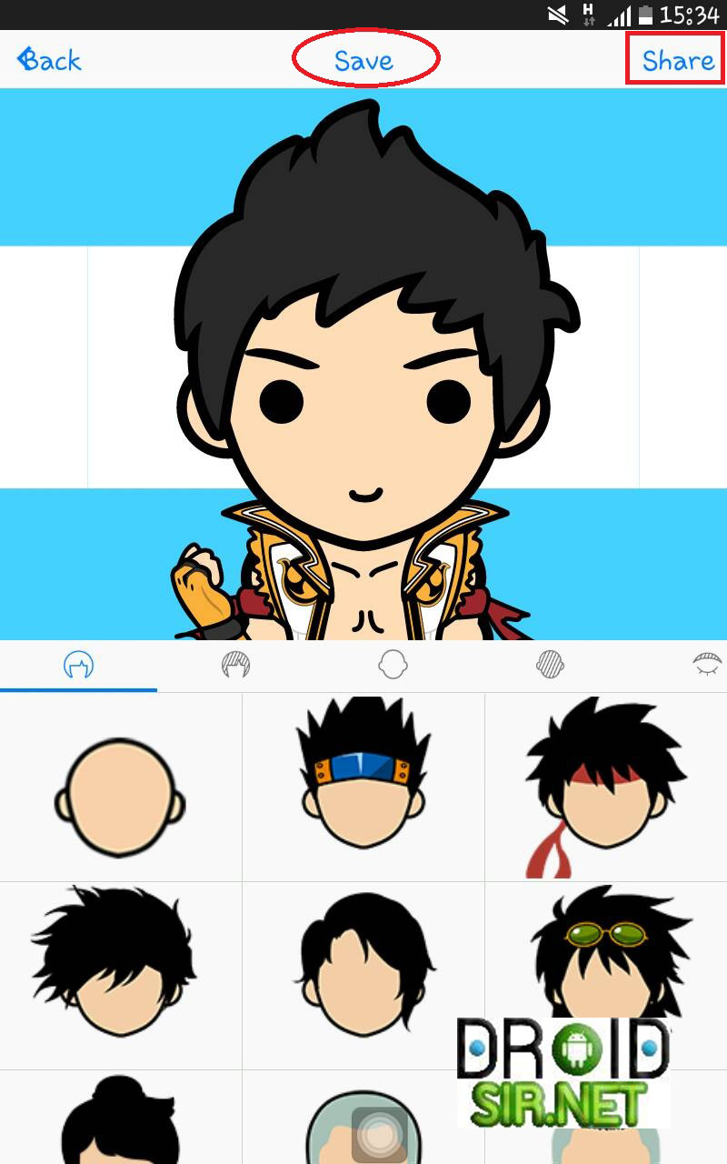 4.เมื่อเราสร้างตัวการ์ตูนเสร็จแล้ว ก็เข้าสู่การ Save หรือเราจะเลือกแชร์ผ่านทาง เฟสบุ๊ค ทันที่ได้เลย